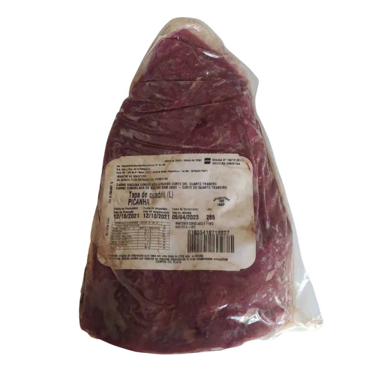 Da linha Premium, a Picanha Argentina Campos Del Plata é animais de origem britânica, com predominância para Angus e Hereford, criados nas planícies frias e úmidas dos pampas argentinos, com marmoreio característico da raça, maciez, muito sabor e suculência.